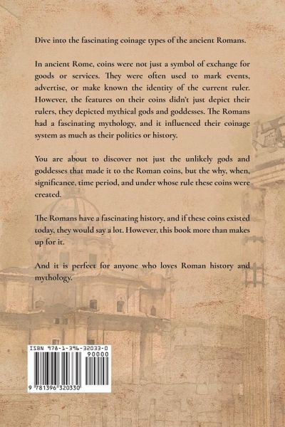 Dive into the fascinating coinage types of the ancient Romans. In ancient Rome, coins were not just a symbol of exchange for goods or services. They were often used to mark events, advertise, or make known the identity of the current ruler. However, the features on their coins didn't just depict their rulers, they depicted mythical gods and goddesses. The Romans had a fascinating mythology, and it influenced their coinage system as much as their politics or history. You are about to discover not just the unlikely gods and goddesses that made it to the Roman coins, but the why, when, significance, time period, and under whose rule these coins were created. The Romans have a fascinating history, and if these coins existed today, they would say a lot. However, this book more than makes up for it. And it is perfect for anyone who loves Roman history and mythology.