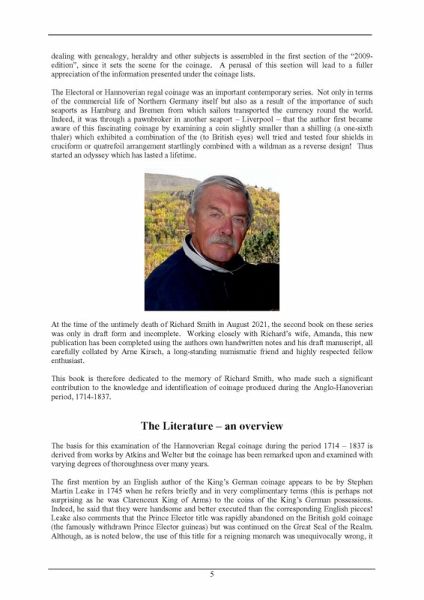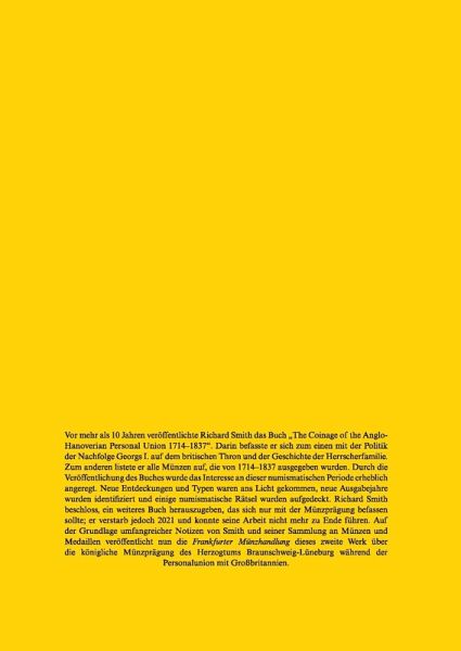 Vor mehr als 10 Jahren veröffentlichte Richard Smith das Buch "The Coinage of the Anglo Hanoverian Personal Union 1714-1837". Darin befasste er sich zum einen mit der Politik der Nachfolge Georgs I. auf dem britischen Thron und der Geschichte der Herrscherfamilie. Zum anderen listete er alle Münzen auf, die von 1714-1837 ausgegeben wurden. Durch die Veröffentlichung des Buches wurde das Interesse an dieser numismatischen Periode erheblich angeregt. Neue Entdeck -ungen und Typen waren ans Licht gekommen, neue Ausgabejahre wurden identifiziert und einige numismatische Rätsel wurden aufgedeckt. Richard Smith beschloss, ein weiteres Buch herauszugeben, dass sich nur mit der Münzprägung befassen sollte; er verstarb jedoch 2021 und konnte seine Arbeit nicht mehr zu Ende führen. Die Frankfurter Münzhandlung veröffentlicht nun sein zweites Werk über die königliche Münzprägung des Herzogtums Braunschweig-Lüneburg während der Personalunion mit Großbritannien auf Basis der umfangreichen Notizen von Smith und seiner Sammlung an Münzen und Medaillen.