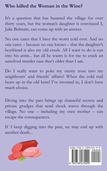 Who killed the Woman in the Wine? ¿¿It's a question that has haunted the village for over thirty years, but the woman's daughter is convinced I, Julie Belmain, can come up with an answer. No one cares that I have the worst cold ever. And no one cares - because no one knows - that the daughter's boyfriend is also my old crush. All I want to do is run into his arms... but all he wants is for me to crack an unsolved murder case that's older than I am. Do I really want to poke my snotty nose into my neighbours' and friends' affairs? When the cold trail heats up in the old hotel I've invested in, I…mehr