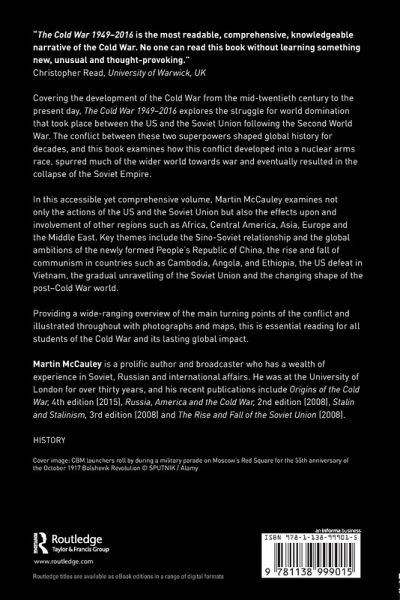 In this accessible yet comprehensive volume, Martin McCauley examines not only the actions of the United States and the Soviet Union but also the effects upon and involvement of other regions such as Africa, Central America, Asia, Europe and the Middle East. Key themes include the Sino-Soviet relationship and the global ambitions of the newly formed People's Republic of China, the rise and fall of communism in countries such as Cuba, Angola and Ethiopia, the US defeat in Vietnam, the gradual unravelling of the Soviet Union and the changing shape of the post-Cold War world.
