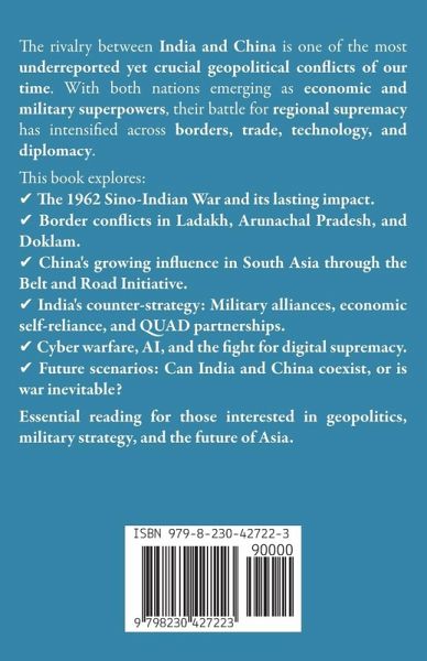 The rivalry between India and China is one of the most underreported yet crucial geopolitical conflicts of our time. With both nations emerging as economic and military superpowers, their battle for regional supremacy has intensified across borders, trade, technology, and diplomacy. This book explores: ¿ The 1962 Sino-Indian War and its lasting impact. ¿ Border conflicts in Ladakh, Arunachal Pradesh, and Doklam. ¿ China's growing influence in South Asia through the Belt and Road Initiative. ¿ India's counter-strategy: Military alliances, economic self-reliance, and QUAD partnerships. ¿ Cyber warfare, AI, and the fight for digital supremacy. ¿ Future scenarios: Can India and China coexist, or is war inevitable? Essential reading for those interested in geopolitics, military strategy, and the future of Asia.