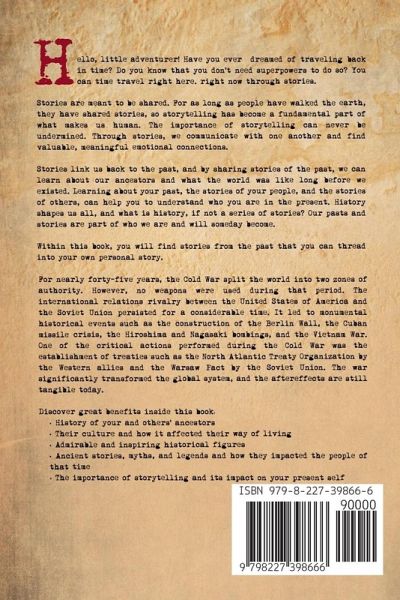Hello, little adventurer! Have you ever dreamed of traveling back in time? Do you know that you don't need superpowers to do so? You can time travel right here, right now...through stories. Stories link us back to the past, and by sharing stories of the past, we can learn about our ancestors and what the world was like long before we existed. Learning about your past, the stories of your people, and the stories of others, can help you to understand who you are in the present. History shapes us all, and what is history, if not a series of stories? Our pasts and stories are part of who we are and will someday become. Within this book, you will find stories from the past that you can thread into your own personal story. After World War II, America's bout with the Soviet Union catapulted its rise as the world's dominant power. In response, the Soviet Union built its new international strategy around its rivalry with the United States. The US-Soviet relations were impacted by a number of factors that led to the Cold War. For nearly forty-five years, the Cold War split the world into two zones of authority. However, no weapons were used during that period. The international relations rivalry between the United States of America and the Soviet Union persisted for a considerable time. It led to monumental historical events such as the construction of the Berlin Wall, the Cuban missile crisis, the Hiroshima and Nagasaki bombings, and the Vietnam War. One of the critical actions performed during the Cold War was the establishment of treaties such as the North Atlantic Treaty Organization by the Western allies and the Warsaw Pact by the Soviet Union. The war significantly transformed the global system, and the aftereffects are still tangible today. Discover great benefits inside this book: History of your and others' ancestors Their culture and how it affected their way of living Admirable and inspiring historical figures Ancient stories, myths, and legends and how they impacted the people of that time The importance of storytelling and its impact on your present self Kids love this book, and it helps them to: Build a stronger sense of self through exploring their roots and culture Emulate the courage and bravery of heroic figures in history Be curious about the struggles and triumphs of their ancestors Learn to ask relevant questions about the nature of our lives Appreciate the inventions and innovations that make our lives better today Develop an understanding of how modern societies came to be Connect with others through sharing of stories Bonus for You included as downloads inside every book: