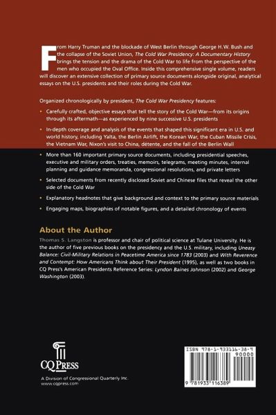 The Cold War Presidency: A Documentary History is a must-have reference for students and scholars of this era. This new volume contains an extensive collection of documents alongside carefully crafted, objective analysis of all the key events of the Cold War. Organized chronologically by president, The Cold War Presidency presents original, analytical essays on the presidents and their roles during the Cold War from Harry Truman through George H.W. Bush, and over 150 important primary source documents with explanatory headnotes. The pairing together of these useful materials allows researchers to learn comprehensively or selectively about the interdependence of the presidency and the Cold War. Important primary source documents contained in this volume include: Presidential speeches Executive and military orders Internal planning and guidance memoranda Conversations Memoirs Telegrams Meeting minutes Private letters And many more The Cold War Presidency also includes selected documents from the other side of the Cold War from recently disclosed Soviet, Chinese, Eastern European document files. Engaging maps, timelines, and biographies of notable figures help readers understand key issues and information. This new reference resource will be a great fit for academic, school, and public libraries serving researchers in U.S. history, government, politics, foreign policy, and more.