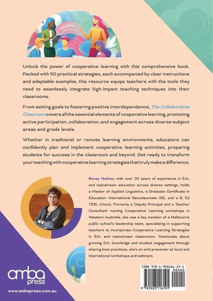 Boney Nathan, with over 30 years of experience in EAL and mainstream education across diverse settings, holds a Master of Applied Linguistics, a Graduate Certificate in Education: International Baccalaureate (IB), and a B. Ed TESL (Hons). Formerly a Deputy Principal and a Teacher Consultant running Cooperative Learning workshops in Western Australia, she was a key member of a Melbourne public school's leadership team, specialising in supporting teachers to incorporate Cooperative Learning Strategies in EAL and mainstream classrooms. Passionate about growing EAL knowledge and student engagement through sharing best practices, she's an avid presenter at local and international workshops and webinars.
