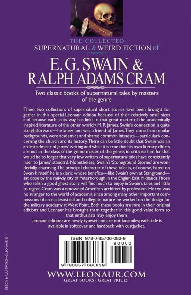 Two classic books of supernatural tales by masters of the genre These two collections of supernatural short stories have been brought together in this special Leonaur edition because of their relatively small sizes and because each, in its way, has links to that great master of the academically inspired literature of the other worldly, M. R James. Swain's connection is quite straightforward-he knew and was a friend of James. They came from similar backgrounds, were academics and shared common interests-particularly concerning the church and its history. There can be little doubt that Swain was an ardent admirer of James' writing and while it is true that his own literary efforts are not in the class of the grand-master of the genre, to criticise him for that would be to forget that very few writers of supernatural tales have consistently risen to James' standard. Nonetheless, Swain's 'Stoneground Stories' are wonderfully charming. The principal character of these tales is, of course, based on Swain himself; he is a cleric whose benefice-like Swain's own at Stanground-sat close by the railway city of Peterborough in the English East Midlands. Those who relish a good ghost story will find much to enjoy in Swain's tales and little to regret. Cram was a renowned American architect by profession. He too was no stranger to the world of academia, since among many other important commissions of an ecclesiastical and collegiate nature he worked on the design for the military academy at West Point. Both these books are rare in their original editions and Leonaur has brought them together in this good value form so that enthusiasts may enjoy them. Leonaur editions are newly typeset and are not facsimiles; each title is available in softcover and hardback with dustjacket.