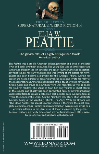 The ghostly tales of a highly distinguished female American author Elia Peattie was a prolific American author, journalist and critic of the later 19th and early twentieth centuries. The young Elia was an avid reader and writer and although she left school at the age of fourteen, she was exceptionally talented. By her early twenties she was writing short stories for newspapers and soon became a journalist for the 'Chicago Tribune.' During her career she held a number of senior journalistic posts and wrote for many of the most prestigious American periodicals of the day. She wrote novels, non-fiction guides and travel books, which were well regarded, as well as books for younger readers. 'The Shape of Fear,' her only volume of short stories of the strange and ghostly has been augmented here, by several previously uncollected tales, to create a collection that includes such evocative titles as 'From the Loom of the Dead,' 'On the Northern Ice,' 'Story of an Obstinate Corpse,' 'Story of the Vanishing Patient,' 'The Angel With the Broom' and 'The Blood Apple.' This special Leonaur edition is therefore the most complete collection of Elia Peattie's supernatural fiction available and it will be a welcome addition to the libraries of all those fascinated by he genre. Leonaur editions are newly typeset and are not facsimiles; each title is available in softcover and hardback with dustjacket.