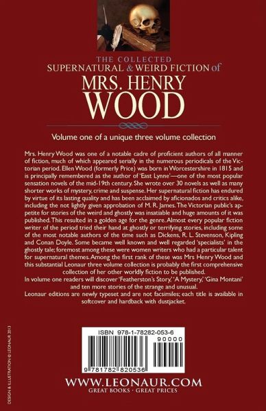 Volume one of a unique three volume collection Mrs. Henry Wood was one of a notable cadre of proficient authors of all manner of fiction, much of which appeared serially in the numerous periodicals of the Victorian period. Ellen Wood (formerly Price) was born in Worcestershire in 1815 and is principally remembered as the author of 'East Lynne'-one of the most popular sensation novels of the mid-19th century. She wrote over 30 novels as well as many shorter works of mystery, crime and suspense. Her supernatural fiction has endured by virtue of its lasting quality and has been acclaimed by aficionados and critics alike, including the not lightly given approbation of M. R. James. The Victorian public's appetite for stories of the weird and ghostly was insatiable and huge amounts of it was published. This resulted in a golden age for the genre. Almost every popular fiction writer of the period tried their hand at ghostly or terrifying stories, including some of the most notable authors of the time such as Dickens, R. L. Stevenson, Kipling and Conan Doyle. Some became well known and well regarded 'specialists' in the ghostly tale; foremost among these were women writers who had a particular talent for supernatural themes. Among the first rank of these was Mrs Henry Wood and this substantial Leonaur three volume collection is probably the first comprehensive collection of her other worldly fiction to be published. In volume one readers will discover 'Featherston's Story,' 'A Mystery,' 'Gina Montani' and ten more stories of the strange and unusual. Leonaur editions are newly typeset and are not facsimiles; each title is available in softcover and hardback with dustjacket.
