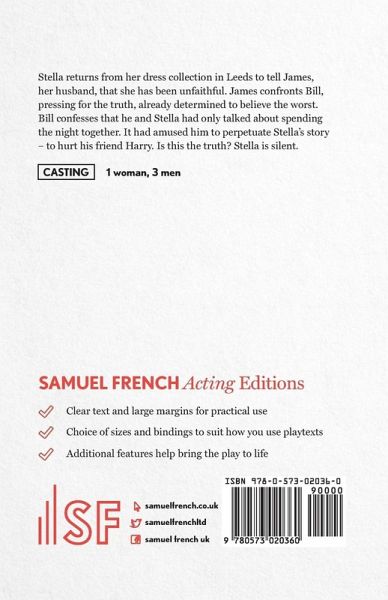 Stella returns from her dress collection in Leeds to tell James, her husband, that she has been unfaithful. James confronts Bill, pressing for the truth, already determined to believe the worst. Bill confesses that he and Stella had only talked about spending the night together. It had amused him to perpetuate Stella's story - to hurt his friend Harry. Is this the truth? Stella is silent.