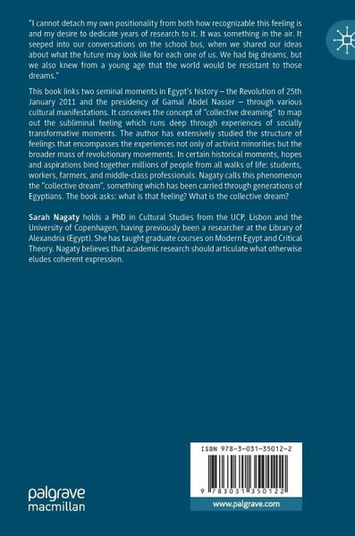 This book links two seminal moments in Egypt's history - the Revolution of 25th January 2011 and the presidency of Gamal Abdel Nasser - through various cultural manifestations. It conceives the concept of "collective dreaming" to map out the subliminal feeling which runs deep through experiences of socially transformative moments. The author has extensively studied the structure of feelings that encompasses the experiences not only of activist minorities but the broader mass of revolutionary movements. In certain historical moments, hopes and aspirations bind together millions of people from all walks of life: students, workers, farmers, and middle-class professionals. Nagaty calls this phenomenon the "collective dream", something which has been carried through generations of Egyptians. The book will be of interest to students and scholars of social movement studies, cultural studies and cultural sociology.