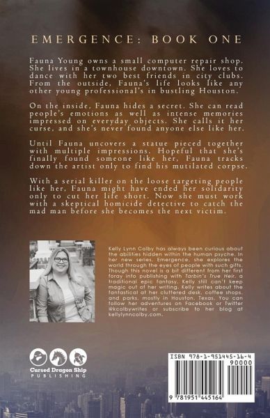 When the cocoon becomes too tight, the next step is EMERGENCE. Fauna Young owns a small computer repair shop. She lives in a townhouse downtown. She loves to dance with her two best friends in city clubs. From the outside, Fauna's life looks like any other young professional's in bustling Houston. On the inside, Fauna hides a secret. She can read people's emotions as well as intense memories impressed on everyday objects. She calls it her curse, and she's never found anyone else like her. Until Fauna uncovers a statue pieced together with multiple impressions. Hopeful that she's finally found someone like her, Fauna tracks down the artist only to find his mutilated corpse. With a serial killer on the loose targeting people like her, Fauna might have ended her solidarity only to cut her life short. Now she must work with a skeptical homicide detective to catch the mad man before she becomes the next victim.