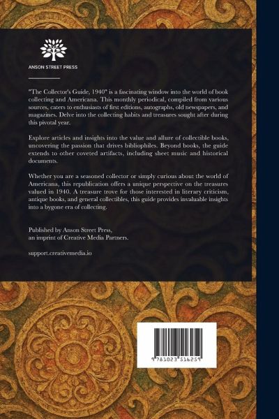"The Collector's Guide, 1940" is a fascinating window into the world of book collecting and Americana. This monthly periodical, compiled from various sources, caters to enthusiasts of first editions, autographs, old newspapers, and magazines. Delve into the collecting habits and treasures sought after during this pivotal year. Explore articles and insights into the value and allure of collectible books, uncovering the passion that drives bibliophiles. Beyond books, the guide extends to other coveted artifacts, including sheet music and historical documents. Whether you are a seasoned collector or simply curious about the world of Americana, this republication offers a unique perspective on the treasures valued in 1940. A treasure trove for those interested in literary criticism, antique books, and general collectibles, this guide provides invaluable insights into a bygone era of collecting. This work has been selected by scholars as being culturally important, and is part of the knowledge base of civilization as we know it. This work is in the public domain in the United States of America, and possibly other nations. Within the United States, you may freely copy and distribute this work, as no entity (individual or corporate) has a copyright on the body of the work. Scholars believe, and we concur, that this work is important enough to be preserved, reproduced, and made generally available to the public. We appreciate your support of the preservation process, and thank you for being an important part of keeping this knowledge alive and relevant.