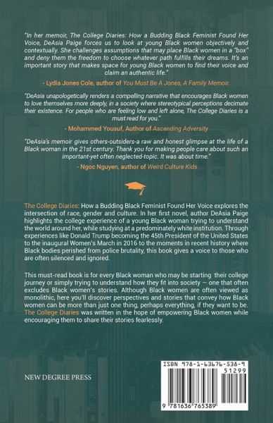 The College Diaries: How a Budding Black Feminist Found Her Voice explores the intersection of race, gender and culture. In her first novel, author DeAsia Paige highlights the college experience of a young Black woman trying to understand the world around her, while studying at a predominately white institution. Through experiences like Donald Trump becoming the 45th President of the United States to the inaugural Women's March in 2016 to the moments in recent history where Black bodies perished from police brutality, this book gives a voice to those who are often silenced and ignored. This must-read book is for every Black woman who may be starting their college journey or simply trying to understand how they fit into society - one that often excludes Black women's stories. Although Black women are often viewed as monolithic, here you'll discover perspectives and stories that convey how Black women can be more than just one thing, perhaps everything, if they want to be. The College Diaries was written in the hope of empowering Black women while encouraging them to share their stories fearlessly.