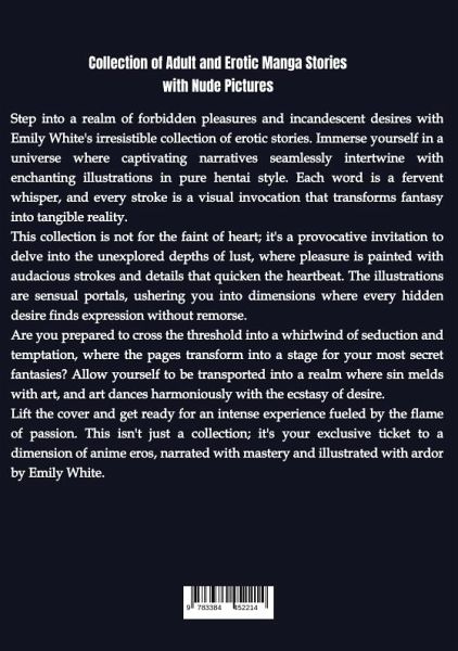 Indulge in an Unforgettable Journey of Passion and Temptation with Emily White's Erotic Masterpiece! Step into a captivating world where seduction knows no bounds in Emily White's latest collection of scintillating erotic stories, enriched with enchanting hentai illustrations. Immerse yourself in a universe where each word is a whispered promise, and every brushstroke is a visual enchantment that brings fantasies to life in pure hentai style. This collection is a daring invitation to explore the uncharted depths of desire, where pleasure unfolds with audacious strokes and details that will quicken your heartbeat. The carefully crafted hentai illustrations serve as sensuous portals, transporting you into dimensions where every hidden fantasy finds unabashed expression. What to Expect: - A Fusion of Literary Mastery and Sensual Artistry - Explicit and Alluring Hentai Illustrations - Stories That Explore the Boundaries of Lust and Fantasy - A Whirlwind of Seduction and Temptation This isn't just a collection; it's your exclusive ticket to a dimension of hentai eros, meticulously narrated and ardently illustrated by Emily White. Lift the cover and prepare for an intense experience fueled by the flame of passion. Caution: This Collection is Not for the Faint of Heart. Are You Ready to Cross the Threshold?