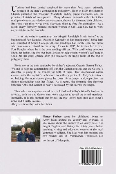 Utahans had been denied statehood for more than forty years, primarily because of the state's connection to polygamy. Then in 1890, the Mormon Church published the Woodruff Manifesto ending plural marriages, and the promise of statehood was granted. Many Mormon husbands either kept their multiple wives or provided separate accommodations for them and their children. But some sent their wives away expecting them to fend for themselves. As a result, many formerly married Mormon women in Salt Lake City had to work as prostitutes in the brothels. It is in this volatile community that Abigail Randolph finds herself at the beginning of Fort Douglas. Raised in Kentucky on her grandparents' horse farm and educated at Smith College, Abigail Randolph had rarely seen her father who was now a colonel in the army. Then in 1895, he invites her to visit Fort Douglas where he is the commanding officer. With conflicting emotions about her father, she sets out from Boston to help regain women's suffrage in Utah, but her goals change after she discovers the tragic result of the end of polygamy there. She is met at the train station by her father's adjutant, Captain Garrett Talbot. Willing to help his commanding officer, the Captain realizes that the Colonel's daughter is going to be trouble for both of them. Her independent nature clashes with the captain's adherence to military protocol. Abby's insistence on helping Mormon women places her own life in danger and jeopardizes her fragile relationship with her father. As a result, the romance that develops between Abby and Garrett is nearly destroyed by the secrets she keeps. Then when an acquaintance of hers is killed and Abby's friend's husband is arrested, both she and Garrett must work together to reveal the actual murderer. Ironically, it is this turmoil that brings the two lovers back into each other's arms and finally secures Abby's relationship with her father.
