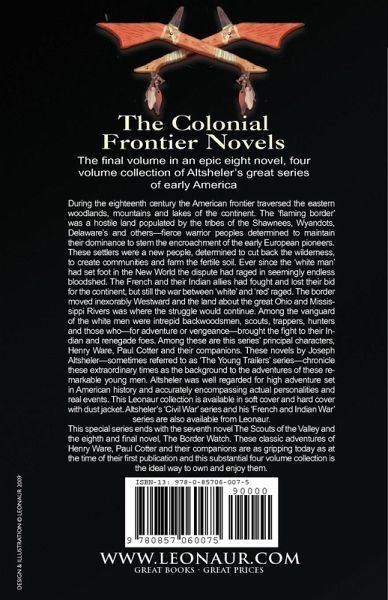 The final volume in an epic eight novel, four volume collection of Altsheler's great series of early America During the eighteenth century the American frontier traversed the eastern woodlands, mountains and lakes of the continent. The 'flaming border' was a hostile land populated by the tribes of the Shawnees, Wyandots, Delaware's and others-fierce warrior peoples determined to maintain their dominance to stem the encroachment of the early European pioneers. These settlers were a new people, determined to cut back the wilderness, to create communities and farm the fertile soil. Ever since the 'white man' had set foot in the New World the dispute had raged in seemingly endless bloodshed. The French and their Indian allies had fought and lost their bid for the continent, but still the war between 'white' and 'red' raged. The border moved inexorably Westward and the land about the great Ohio and Mississippi Rivers was where the struggle would continue. Among the vanguard of the white men were intrepid backwoodsmen, scouts, trappers, hunters and those who-for adventure or vengeance-brought the fight to their Indian and renegade foes. Among these are this series' principal characters, Henry Ware, Paul Cotter and their companions. These novels by Joseph Altsheler-sometimes referred to as 'The Young Trailers' series-chronicle these extraordinary times as the background to the adventures of these remarkable young men. Altsheler was well regarded for high adventure set in American history and accurately encompassing actual personalities and real events. This Leonaur collection is available in soft cover and hard cover with dust jacket. Altsheler's 'Civil War' series and his 'French and Indian War' series are also available from Leonaur. This special series ends with the seventh novel The Scouts of the Valley and the eighth and final novel, The Border Watch. These classic adventures of Henry Ware, Paul Cotter and their companions are as gripping today as at the time of their first publication and this substantial four volume collection is the ideal way to own and enjoy them.