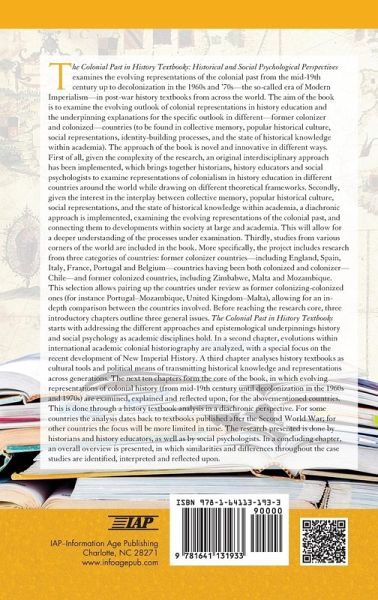 This book examines the evolving representations of the colonial past from the mid-19th century up to decolonization in the 1960s and 70s − the so-called era of Modern Imperialism - in post-war history textbooks from across the world. The aim of the book is to examine the evolving outlook of colonial representations in history education and the underpinning explanations for the specific outlook in different - former colonizer and colonized - countries (to be found in collective memory, popular historical culture, social representations, identity-building processes, and the state of historical knowledge within academia). The approach of the book is novel and innovative in different ways. First of all, given the complexity of the research, an original interdisciplinary approach has been implemented, which brings together historians, history educators and social psychologists to examine representations of colonialism in history education in different countries around the world while drawing on different theoretical frameworks. Secondly, given the interest in the interplay between collective memory, popular historical culture, social representations, and the state of historical knowledge within academia, a diachronic approach is implemented, examining the evolving representations of the colonial past, and connecting them to developments within society at large and academia. This will allow for a deeper understanding of the processes under examination. Thirdly, studies from various corners of the world are included in the book. More specifically, the project includes research from three categories of countries: former colonizer countries - including England, Spain, Italy, France, Portugal and Belgium -, countries having been both colonized and colonizer - Chile - and former colonized countries, including Zimbabwe, Malta and Mozambique. This selection allows pairing up the countries under review as former colonizing-colonized ones (for instance Portugal-Mozambique, United Kingdom-Malta), allowing for an in-depth comparison between the countries involved. Before reaching the research core, three introductory chapters outline three general issues. The book starts with addressing the different approaches and epistemological underpinnings history and social psychology as academic disciplines hold. In a second chapter, evolutions within international academic colonial historiography are analyzed, with a special focus on the recent development of New Imperial History. A third chapter analyses history textbooks as cultural tools and political means of transmitting historical knowledge and representations across generations. The next ten chapters form the core of the book, in which evolving representations of colonial history (from mid-19th century until decolonization in the 1960s and 1970s) are examined, explained and reflected upon, for the abovementioned countries. This is done through a history textbook analysis in a diachronic perspective. For some countries the analysis dates back to textbooks published after the Second World War; for other countries the focus will be more limited in time. The research presented is done by historians and history educators, as well as by social psychologists. In a concluding chapter, an overall overview is presented, in which similarities and differences throughout the case studies are identified, interpreted and reflected upon.