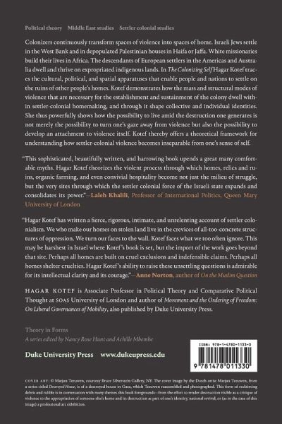 Colonizers continuously transform spaces of violence into spaces of home. Israeli Jews settle in the West Bank and in depopulated Palestinian houses in Haifa or Jaffa. White missionaries build their lives in Africa. The descendants of European settlers in the Americas and Australia dwell and thrive on expropriated indigenous lands. In The Colonizing Self Hagar Kotef traces the cultural, political, and spatial apparatuses that enable people and nations to settle on the ruins of other people's homes. Kotef demonstrates how the mass and structural modes of violence that are necessary for the establishment and sustainment of the colony dwell within settler-colonial homemaking, and through it shape collective and individual identities. She thus powerfully shows how the possibility to live amid the destruction one generates is not merely the possibility to turn one's gaze away from violence but also the possibility to develop an attachment to violence itself. Kotef thereby offers a theoretical framework for understanding how settler-colonial violence becomes inseparable from one's sense of self.