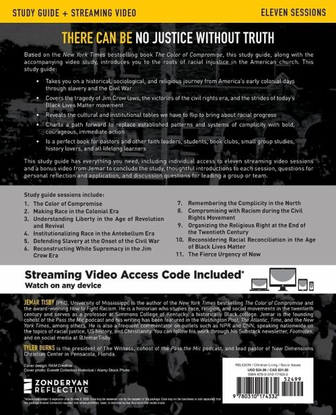 Racism is one of the most polarizing conversations in our world and in the church. But it's a topic that the church can and must take part in. In this twelve-session study, Jemar Tisby will guide you and your group through deeper reflections and concrete solutions for improved race relations and a racially inclusive church. Based on the teachings of his bestselling book, The Color of Compromise, Tisby will take you deeper into the topic, so that you'll: * Learn more about the history of racism in America - from the colonial era through the Civil Rights movement. * Develop a stronger ability to see the role that the American church has played in that abuse. * Consider what gospel-inspired role you and your church can play in the important work of racial healing. The Color of Compromise Study Guide asks that participants acknowledge some challenging truths - about themselves and their nation - but it also makes space for you to articulate how you feel about confronting these truths. Throughout the twelve sessions, you'll take part in a number of activities, including: * Video teachings from Jemar * Written responses and personal reflections. * Scripture readings and prayers. * Group discussion questions. Before you embark, remember that peace among racial and ethnic groups is not something that we have to achieve by our own wisdom and strength. The foundation of all reconciliation was accomplished by Jesus on the cross. Through Christ's power, the church can become a model of racial unity in our country. This study guide has everything you need for a full personal or group experience. * The study guide itself - with thoughtful introductions, questions for personal reflection and application, and discussion questions for leading a group or team. * An individual access code to stream all video sessions online. (You don't need to buy a DVD!) Sessions and video run times: 1. The Color of Compromise (17 min) 2. Making Race in the Colonial Era (23 min) 3. Understanding Liberty in the Age of Revolution and Revival (20 min) 4. Institutionalizing Race in the Antebellum Era (24 min) 5. Defending Slavery at the Onset of the Civil War (19 min) 6. Reconstructing White Supremacy in the Jim Crow Era (16 min) 7. Remembering the Complicity in the North (19 min) 8. Compromising with Racism during the Civil Rights Movement (26 min) 9. Organizing the Religious Right at the End of the Twentieth Century (20 min) 10. Reconsidering Racial Reconciliation in the Age of Black Lives Matter (24 min) 11. The Fierce Urgency of Now (20 min) 12. Be Strong and Courageous (5 min) Streaming video access code included. Access code subject to expiration after October 8, 2029. Code may be redeemed only by the recipient of this package. Code may not be transferred or sold separately from this package. Internet connection required. Void where prohibited, taxed, or restricted by law. Additional offer details inside.