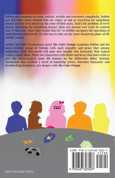 Robbie sees emotions in color. Autistic, artistic and extremely empathetic, Robbie can tell when those around him are angry or sad or searching for something deeper in their lives based on the color of their aura. That's the problem: If we're always searching for something deeper, then can anyone ever truly be content and, if they can, what color would that be? As Robbie navigates the questions of contentment and growth, he also has to take on the most dangerous place of all: Middle School. Author Me'Chele Sevanesian's novel The Color Orange examines Robbie and his neuro-diverse group of friends with such empathy and grace that anyone unfamiliar with this world will gain new insight into humanity that typical writers rarely show. These are characters with depth and heart that don't exist to give the neuro-typical some life lessons on the differently abled. Instead, Sevanesian has created a novel of haunting power, hilarious humanity and breathtaking loveliness. See deeper with The Color Orange.