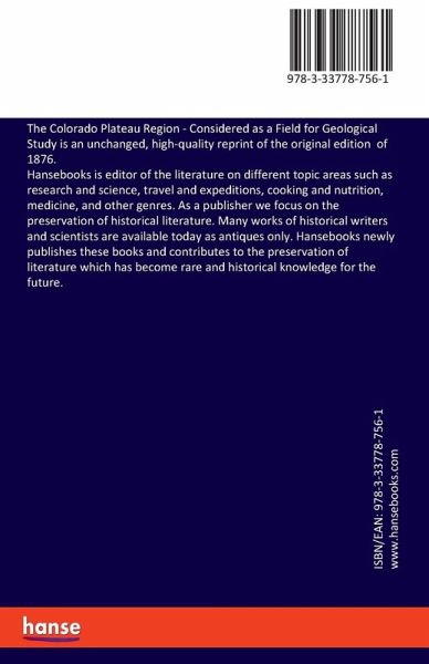 The Colorado Plateau Region - Considered as a Field for Geological Study is an unchanged, high-quality reprint of the original edition of 1876.