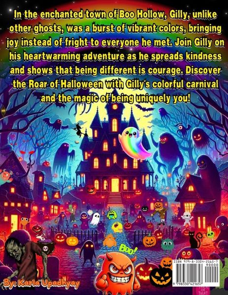 Introducing "Gilly the Rainbow Ghost" - a heartwarming and enchanting tale that will capture children's imagination and delight parents alike. Follow the captivating story of Gilly, a unique and colorful ghost who embarks on a journey to bring joy and togetherness to his spooky town of Boo Hollow. This delightful book teaches valuable lessons about embracing individuality, celebrating differences, and the power of spreading happiness. With its beautiful and vivid storytelling, "Gilly the Rainbow Ghost" is perfect for bedtime reading and family storytime. Filled with vibrant illustrations and an uplifting message, this book is a must-have addition to any child's library. Join Gilly and his ghostly friends as they discover the true magic of Halloween and learn a valuable lesson about the beauty of diversity. Share in the laughter, fun, and heartwarming moments with "Gilly the Rainbow Ghost" - a story that will leave a memorable and lasting impression on young readers and their families. Every kid will love the pictures! I added a few larger words to expand vocabulary. Target age 7-13 I wrote this book for everyone to enjoy. Its focus is everyone is different and that's ok.