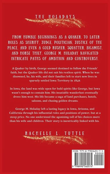 A valuable genealogy resource, this book includes eighty photos and illustrations, a listing of three generations of descendants, and a full index. From humble beginnings as a Quaker, to his later roles as sheriff, judge, politician, justice of the peace and even a gold rusher, squatter, bigamist and horse thief, George M. Holaday navigated intricate paths of ambition and controversy. A Quaker by birth, George seemed destined to follow the Friends' faith, but the Quaker life did not suit his restless spirit. When he was disowned, he, his wife, and their families left to start new lives in sparsely settled Iowa Territory in 1840. In Iowa, the land was wide open for bold spirits like George, but Iowa wasn't enough to contain him. His insatiable wanderlust drove him west. His life was a saga of land purchases, saloons and chasing golden dreams that exacted a heavy toll on the family he left behind. George left a lasting legacy in Iowa, Arizona and California through his influential roles and positions of power, but at a steep price. No one understood the agonizing toll of his choices more than his wife and children. Their stories are inextricably linked with his. This true story uncovers the hidden history that the textbooks missed. George M. Holaday was nearly the first, if not the first Holaday in Iowa Territory. The same can be said for Ezekiel Hollingsworth, his wife's father, of the Hollingsworth surname. Between them, there are thousands of descendants. This is the first of two in the series, "The Holadays." The second in the series, "Echoes of Ambition," is the story of George's granddaughter Elizabeth Murray Shepherd, and her equally enthralling life. Release date is expected to be late 2024.