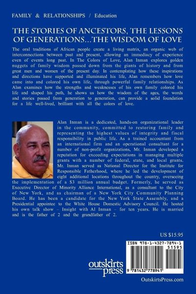 "The Colors of Love" Treasured wisdom on the family. One of the finest books of its kind to appear in recent times. Parents will want this book, not only to read for themselves from cover to cover, but to read to their children to create the warm family love so insightfully described on page after page. We have long known that Black wisdom informs much of the most profound thinking on the family. It has taken the insight and devotion of Alan J. Inman to gather this wisdom in one place. "If you can't run your own house, you can't run the White House...so we've adjusted our schedules to make…mehr
