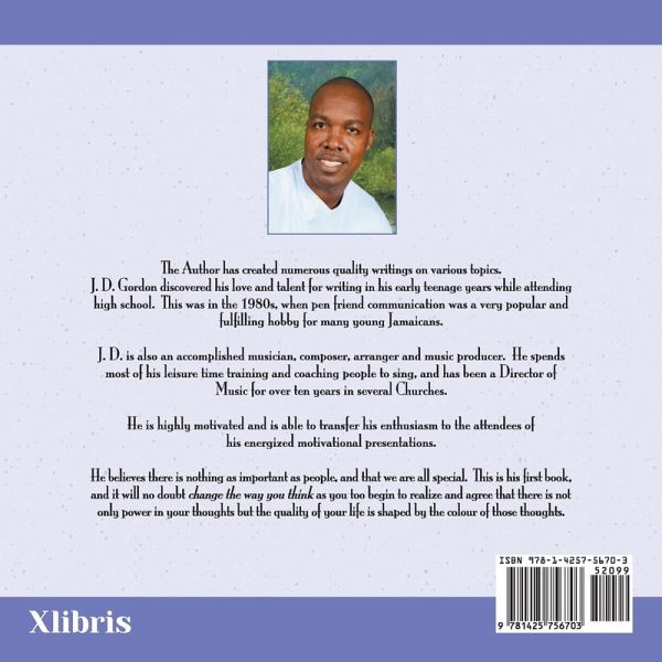 The inspirational genre has gained a talented and thoughtful newcomer in writer-thinker JERMAINE DAVID GORDON, who released his first, unique inspirational picture-and-quotations book. Now available online and at your local bookstore. These thoughts are both witty and provocative and can be used by speechmakers and writers who need pertinent truths to illustrate their points or just to add ingredients to life. These little nuggets of truth coupled with the breath-taking pictures will stretch your imagination. "Here, his "inspiring, witty and motivating words," coupled with illustrations, are offered to help unclog that word-pumping artery, or better yet, soothe what ails you and make you think. It sounds a bit Chicken Soup for the Soulish,but it's not exactly. There are words that do make you ponder..." - KIRKUS DISCOVERIES, NEILSON BUSINESS MEDIA, NY The book connects with its readers and is recommended for Students, Professionals, Christians, Talk Show Hosts, and Photographers or just about anyone who wants a good laugh, enjoys reading, or seek to find meaning in life. It is both a book to keep and a book to give. It is the ideal gift book for your family and friends. You can get your copy of this book at Xlibris, Barnes and Noble, Amazon among others. Check out J. D. Gordon¿s official website by clicking here: MY WEBSITE To subscribe to my blog click here: MY BLOG