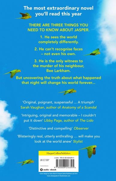 How do you solve a mystery when you cant remember the clues? There are three things to know about Jasper. He sees the world completely differently. He cant recognise faces. He is the only witness to the murder of his neighbour, Bee Larkham. But its hard to catch a murderer when you cant recognise their face. An extraordinary debut to make you see the world in ways youve never seen before.
