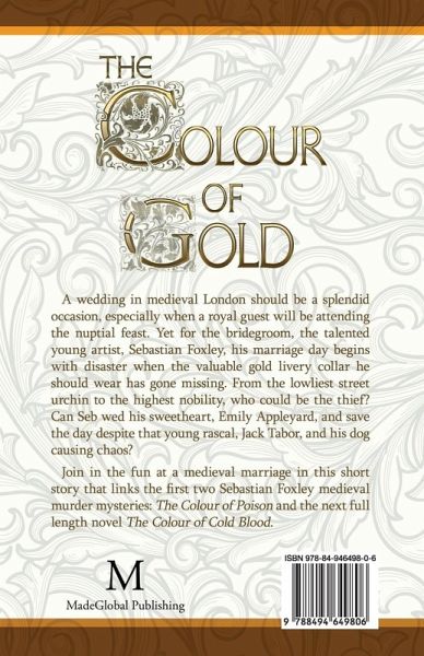 BOOK TWO IN THE SEBASTIAN FOXLEY SERIES A wedding in medieval London should be a splendid occasion, especially when a royal guest will be attending the nuptial feast. Yet for the bridegroom, the talented young artist, Sebastian Foxley, his marriage day begins with disaster when the valuable gold livery collar he should wear has gone missing. From the lowliest street urchin to the highest nobility, who could be the thief? Can Seb wed his sweetheart, Emily Appleyard, and save the day despite that young rascal, Jack Tabor, and his dog causing chaos? Join in the fun at a medieval marriage in this short story that links the first two Sebastian Foxley medieval murder mysteries: The Colour of Poison and the next full-length novel The Colour of Cold Blood.