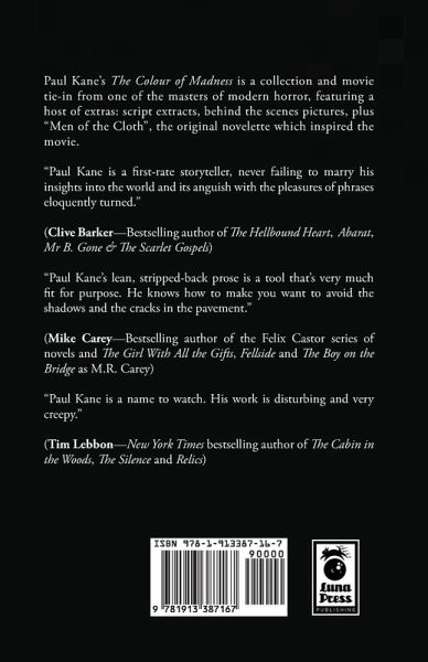 Paul Kane's The Colour of Madness is a collection and movie tie- in from one of the masters of modern horror, featuring a host of extras: script extracts, behind the scenes pictures, plus "Men of the Cloth", the original novelette which inspired the movie.
