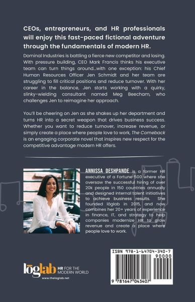 "Engaging read that highlights many of the behaviors that derail leaders. I appreciate the real-world issues and examples of how to coach through complicated complex issues. I wish I had this book twenty years ago." -Teuila Hanson, Chief People Officer, LinkedIn CEOs, entrepreneurs, and HR professionals will enjoy this fast-paced fictional adventure through the fundamentals of modern HR. Dominal Industries is battling a fierce new competitor and losing. With pressure building, CEO Mark Francis thinks his executive team can turn things around...with one exception: his Chief Human Resources Officer Jen Schmidt and her team are struggling to fill critical positions and reduce turnover. With her career in the balance, Jen starts working with a quirky, slinky-wielding consultant named Meg Beecham, who challenges Jen to reimagine her approach. You'll be cheering on Jen as she shakes up her department and turns HR into a secret weapon that drives business success. Whether you want to reduce turnover, increase revenue, or simply create a place where people love to work, The Comeback is an engaging corporate novel that inspires new respect for the competitive advantage modern HR offers.