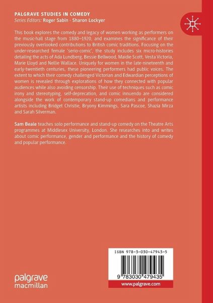 This book explores the comedy and legacy of women working as performers on the music-hall stage from 1880-1920, and examines the significance of their previously overlooked contributions to British comic traditions. Focusing on the under-researched female 'serio-comic', the study includes six micro-histories detailing the acts of Ada Lundberg, Bessie Bellwood, Maidie Scott, Vesta Victoria, Marie Lloyd and Nellie Wallace. Uniquely for women in the late-nineteenth and early-twentieth centuries, these pioneering performers had public voices. The extent to which their comedy challenged Victorian and Edwardian perceptions of women is revealed through explorations of how they connected with popular audiences while also avoiding censorship. Their use of techniques such as comic irony and stereotyping, self-deprecation, and comic innuendo are considered alongside the work of contemporary stand-up comedians and performance artists including Bridget Christie, Bryony Kimmings, Sara Pascoe, ShaziaMirza and Sarah Silverman.