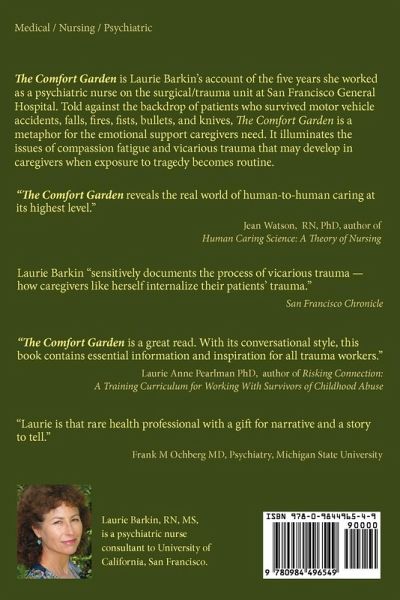 > is Laurie Barkin's account of the five years she worked as a psychiatric nurse on the surgical/trauma unit at San Francisco General Hospital. Told against the backdrop of patients who survived motor vehicle accidents, falls, fires, fists, bullets, and knives, The Comfort Garden is a metaphor for the emotional support caregivers need. The story illuminates the issues of compassion fatigue and vicarious trauma that may develop in caregivers when exposure to tragedy becomes routine. The Comfort Garden will appeal to health care professionals, firefighters, police, war veterans, social workers, journalists, students, and anyone whose life is touched by trauma. "The Comfort Garden reveals the real world of human-to-human caring at its highest level." - Jean Watson, RN, PhD, author of Human Caring Science: A Theory of Nursing "Laurie is that rare health professional with a gift for narrative and a story to tell. This is an important book for any health care worker, but especially for those of us who consider ourselves traumatic stress specialists. It reinforces the values and the spirit that brought us into the field. And it reminds us of the obstacles we face every day: human cruelty, social injustice, dwindling resources. Read this. You'll be better for it." - Frank M Ochberg MD, Clinical Professor of Psychiatry, Michigan State University Laurie Barkin "sensitively documents the process of vicarious trauma - how caregivers like herself internalize their patients trauma." - San Francisco Chronicle "In an age when hospitals have been turning to quicker-acting medications, faster discharges, and fewer deep and meaningful conversations with patients, Laurie Barkin takes the opposite position. She urges us to make the time to use our knowledge of psychodynamic psychotherapy to help traumatized people early in the course of their distress." - Lenore Terr MD, psychiatrist, author of Too Scared to Cry "Whenever we walk into a hospital or a doctor's office we often assume that the patients are somehow broken, sick or frightened and that the nurses and doctors are whole, healthy and brave. In stories that prove these assumptions false, Laurie Barkin shows us how permeable the line actually is between the cared for and the caregiver." - Cortney Davis, author of The Heart's Truth: Essays on the Art of Nursing