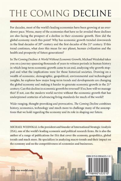 For decades, most of the world's leading economies have been growing at an ever-slower pace. Worse, many of the economies that have so far managed to avoid such a slowdown are also facing the prospect of a decline in their economic growth. How did the global economy reach this point? Why has economic growth trended downwards in the final decades of 20th century and the first decades of the 21st century. If this trend continues, what does this mean for our planet, human civilization and the health and prosperity of future generations? In The Coming Decline: A World Without Economic Growth, Michael Weidokal takes you on a journey spanning thousands of years to witness periods in human history in which long-term economic growth came to an end, analyzing why growth stopped and what the implications were for those historical societies. Drawing on a wealth of economic, demographic, geopolitical, environmental and technological insights, he explores how major long-term trends and developments are changing the global economy and making it harder to generate economic growth in the 21st century. Can this decline in economic growth be reversed? If so, how will we manage this? If not, can the modern world survive without the economic growth that has underpinned centuries of advancing living standards for much of the world? Wide-ranging, thought-provoking and provocative, The Coming Decline combines history, economics, technology and much more to challenge many of the assumptions that we hold regarding the economy and its role in shaping our future.