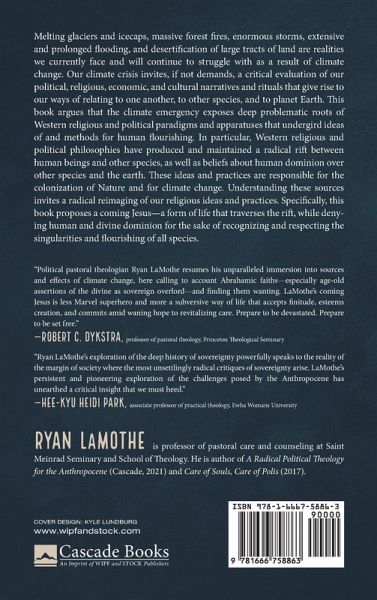 Melting glaciers and icecaps, massive forest fires, enormous storms, extensive and prolonged flooding, and desertification of large tracts of land are realities we currently face and will continue to struggle with as a result of climate change. Our climate crisis invites, if not demands, a critical evaluation of our political, religious, economic, and cultural narratives and rituals that give rise to our ways of relating to one another, to other species, and to planet Earth. This book argues that the climate emergency exposes deep problematic roots of Western religious and political paradigms and apparatuses that undergird ideas of and methods for human flourishing. In particular, Western religious and political philosophies have produced and maintained a radical rift between human beings and other species, as well as beliefs about human dominion over other species and the earth. These ideas and practices are responsible for the colonization of Nature and for climate change. Understanding these sources invites a radical reimaging of our religious ideas and practices. Specifically, this book proposes a coming Jesus--a form of life that traverses the rift, while denying human and divine dominion for the sake of recognizing and respecting the singularities and flourishing of all species.