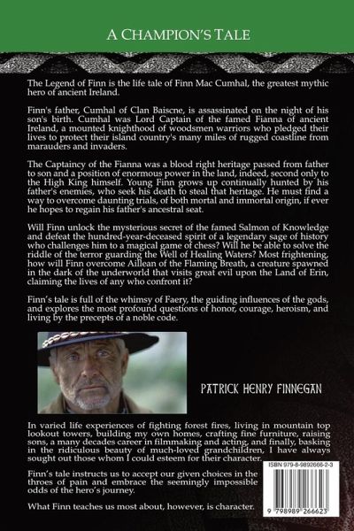 The Legend of Finn is the life tale of Finn Mac Cumhal, the greatest mythic hero of ancient Ireland. Finn's father, Cumhal of Clan Baiscne, is assassinated on the night of his birth. Cumhal was Lord Captain of the famed Fianna of Erin, a mounted knighthood of woodsmen warriors who risked their lives to protect their island country's many miles of rugged coastline from marauders and invaders. The Captaincy of the Fianna is a blood-right heritage passed from father to son and a position of enormous power in Erin, second only to the High King himself. Young Finn grows up continually hunted by his father's enemies, who seek his death to steal that heritage. He must find a way to overcome enormous trials, of both mortal and immortal origin if ever he hopes to regain his father's ancestral seat. Will Finn unlock the mysterious secret of the famed Salmon of Knowledge and defeat the hundred-year-deceased spirit of a legendary sage of history who challenges him to a magical game of chess? Will he be able to solve the riddle of the Hag at the Well of Healing Waters? Most frightening, how will Finn overcome Aillean of the Flaming Breath, a creature spawned in the dark of the underworld that visits great evil upon the Land of Erin, claiming the lives of any who confront it? Finn's tale is full of the whimsy of Faery, the guiding influences of the gods, and explores the most profound questions of honor, courage, heroism, and living by the precepts of a noble code.