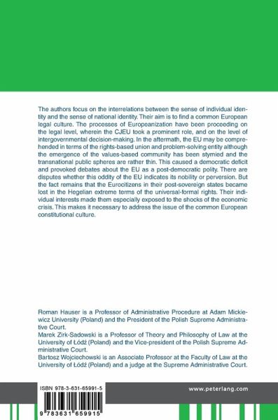 The authors focus on the interrelations between the sense of individual identity and the sense of national identity. Their aim is to find a common European legal culture. The processes of Europeanization have been proceeding on the legal level, wherein the CJEU took a prominent role, and on the level of intergovernmental decision-making. In the aftermath, the EU may be comprehended in terms of the rights-based union and problem-solving entity although the emergence of the values-based community has been stymied and the transnational public spheres are rather thin. This caused a democratic deficit and provoked debates about the EU as a post-democratic polity. There are disputes whether this oddity of the EU indicates its nobility or perversion. But the fact remains that the Eurocitizens in their post-sovereign states became lost in the Hegelian extreme terms of the universal-formal rights. Their individual interests made them especially exposed to the shocks of the economic crisis. This makes it necessary to address the issue of the common European constitutional culture.