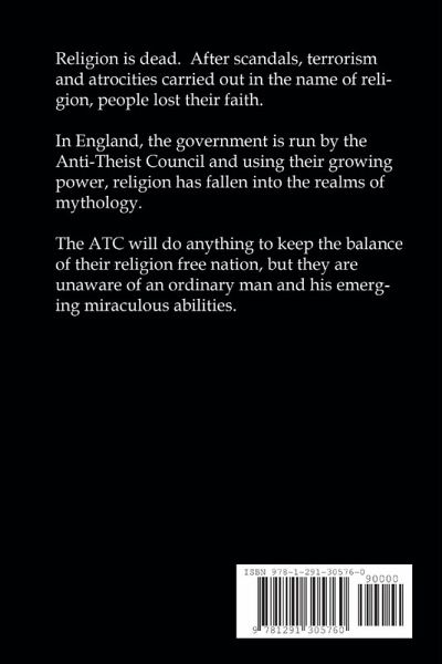 Religion is dead. After scandals, terrorism and atrocities carried out in the name of religion, people lost their faith. In England, the government is run by the Anti-Theist Council and using their growing power, religion has fallen into the realms of mythology. The ATC will do anything to keep the balance of their religion free nation, but they are unaware of an ordinary man and his emerging miraculous abilities.