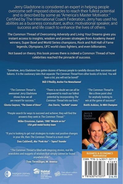 Bestselling Author Jerry Gladstone is highly regarded in the self-development industry as a speaker and success coach Certified by The International Coach Federation (ICF). At the age of twenty-six, he founded a small fine art company and grew it into an international business that specialized in the production, distribution, and marketing of a wide variety of entertainment fine art. Jerry¿s business associations have given him unique access to movie studios and celebrities, including ¿Rocky¿ himself, Sylvester Stallone. In conversations with Sylvester and other super achievers, Jerry observed a ¿Common Thread¿ to success that inspired him to author The Common Thread of Overcoming Adversity and Living Your Dreams. In 2020, Jerry then came out with his second book, Old School Success for the Millennial Generation & Beyond, which offers old school wisdom to the new generation. The inspiring stories found within are provided by Academy Award and Grammy winners, Super Bowl champions, music icons, Olympians, UFC champions, and billionaires. Jerry was born in Brooklyn, New York, and raised in Long Island. He and his wife, Brooke, currently live in Florida with their three children, Austin, Allie, and Emma.
