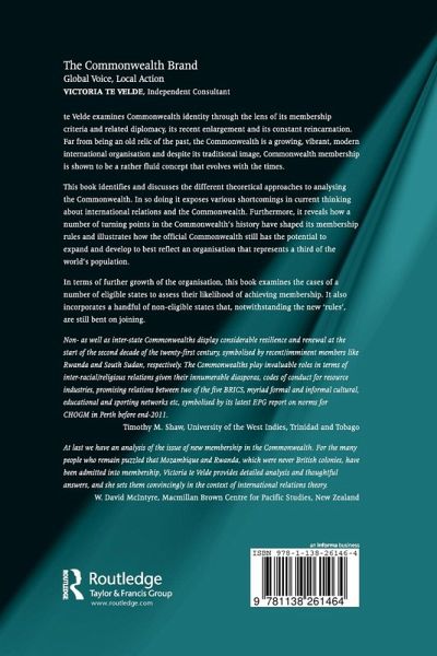 This book examines Commonwealth identity through the lens of its membership criteria, its recent enlargement and its constant reincarnation. In so doing it exposes various shortcomings in current thinking about international relations and the Commonwealth. Furthermore, it reveals how a number of turning points in the Commonwealth's history have shaped its membership rules and illustrates how the official Commonwealth still has the potential to expand and develop to best reflect an organisation that represents a third of the world's population.