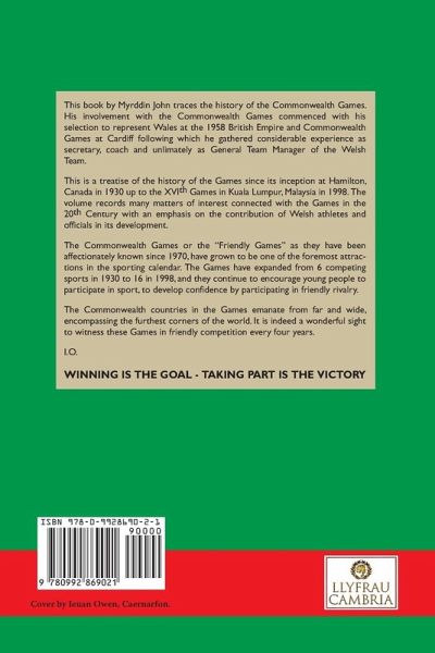 This book by Myrddin John traces the history of the Commonwealth Games. His involvement with the Commonwealth Games commenced with his selection to represent Wales at the 1958 British Empire and Commonwealth Games at Cardiff following which he gathered considerable experience as secretary, coach and ultimately as General Team Manager of the Welsh Team. This is a treatise of the history of the Games since its inception at Hamilton, Canada in 1930 up to the XVI Games in Kuala Lumpur, Malaysia in 1998. The volume records many matters of interest connected with the Games in the 20th Century with an emphasis on the contribution of Welsh athletes and officials in its development. The Commonwealth Games or the "Friendly Games" as they have been affectionately known since 1970, have grown to be one of the foremost attractions in the sporting calendar. The Games have expanded from 6 competing sports in 1930 to 16 in 1998, and they continue to encourage young people to participate in sport, to develop confidence by participating in friendly rivalry.
