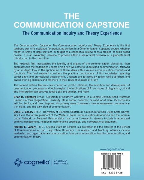 The Communication Capstone: The Communication Inquiry and Theory Experience is the first textbook explicitly designed for graduating seniors in a Communication Capstone course, whether taught in small or large sections, or taught as a conceptual review or as a project- or skills-based course. It is an exemplary resource to provide either a senior-level overview or a graduate-level introduction to the discipline. The textbook first investigates the identity and origins of the communication discipline, then addresses the methodologies underpinning how we come to understand communication, followed by an in-depth look at the application of these ideas within various communication contexts and functions. The final segment considers the practical implications of this knowledge regarding career paths and professional development. Chapters are authored by active, well-published, and award-winning scholars and teachers in their respective areas of study. The second edition features new content on public relations, the evolution and development of communication processes and technologies, the implications of AI on issues of plagiarism, critical and interpretive perspectives toward sex and gender, and more.