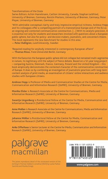 "With admirable conceptual clarity and truly impressive empirical richness, Andreas Hepp and his colleagues offer a compelling portrait of a transnational Europe and of the EU as an ongoing and contested communicative construction. Written in an engaging and accessible style, the volume inserts itself in the heart of contemporary debates about the EU and its crisis. With its analytic precision, it is essential not only for students and researchers involved with questions about a European public sphere, but also for policy- and decision makers, journalists, and concerned citizens. This book represents the new benchmark for studies in this area." - Peter Dahlgren, Lund University, Sweden
