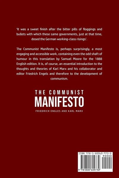 Do you want to read The Communist Manifesto? If so then keep reading... 'It was a sweet finish after the bitter pills of floggings and bullets with which these same governments, just at that time, dosed the German working-class risings'. The Communist Manifesto is, perhaps surprisingly, a most engaging and accessible work, containing even the odd shaft of humour in this translation by Samuel Moore for the 1888 English edition. It is, of course, an essential introduction to the thoughts and theories of Karl Marx and his collaborator and editor Friedrich Engels and therefore to the development of communism. What are you waiting for The Communist Manifesto is one click away, select the "Buy Now" button in the top right corner NOW!