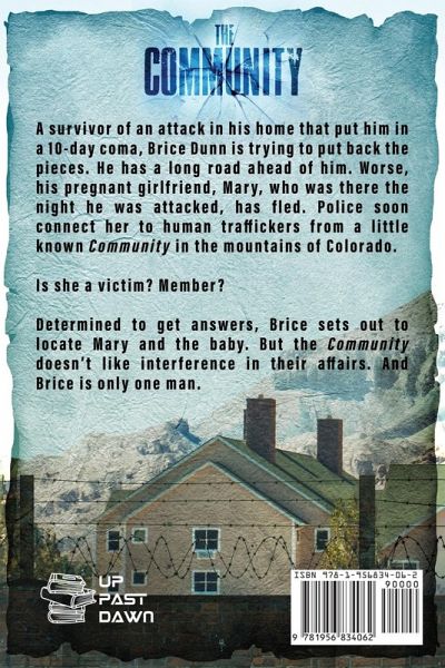 A survivor of an attack in his home that put him in a 10-day coma, Brice Dunn is trying to put back the pieces of his life. He has a long road ahead of him. Worse, his pregnant girlfriend, Mary, who was there the night he was attacked, has fled. Police soon connect her to human traffickers from a little known Community in the mountains of Colorado. Is she a victim? Member? Determined to get answers, Brice sets out to locate Mary and the baby. But the Community doesn't like interference in their affairs. And Brice is only one man.