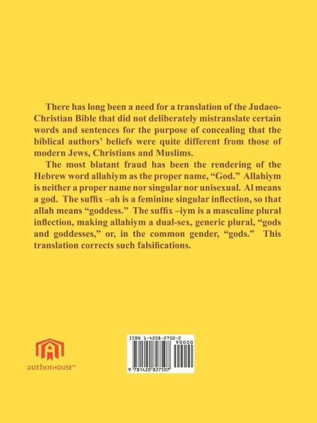 There has long been a need for a translation of the Judaeo-Christian Bible that did not deliberately mistranslate certain words and sentences for the purpose of concealing that the biblical authors' beliefs were quite different from those of modern Jews, Christians and Muslims. The most blatant fraud has been the rendering of the Hebrew word allahiym as the proper name, "God." Allahiym is neither a proper name nor singular nor unisexual. Al means a god. The suffix -ah is a feminine singular inflection, so that allah means "goddess." The suffix -iym is a masculine plural inflection, making allahiym a dual-sex, generic plural, "gods and goddesses," or, in the common gender, "gods." This translation corrects such falsifications.