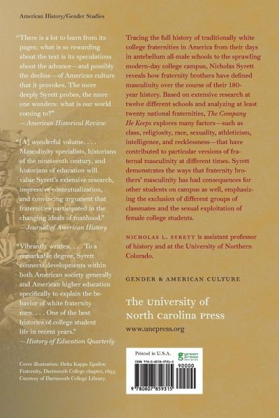 Tracing the full history of traditionally white college fraternities in America from their days in antebellum all-male schools to the sprawling modern-day college campus, Nicholas Syrett reveals how fraternity brothers have defined masculinity over the course of their 180-year history. Based on extensive research at twelve different schools and analyzing at least twenty national fraternities, The Company He Keeps explores many factors — such as class, religiosity, race, sexuality, athleticism, intelligence, and recklessness — that have contributed to particular versions of fraternal masculinity at different times. Syrett demonstrates the ways that fraternity brothers' masculinity has had consequences for other students on campus as well, emphasizing the exclusion of different groups of classmates and the sexual exploitation of female college students.