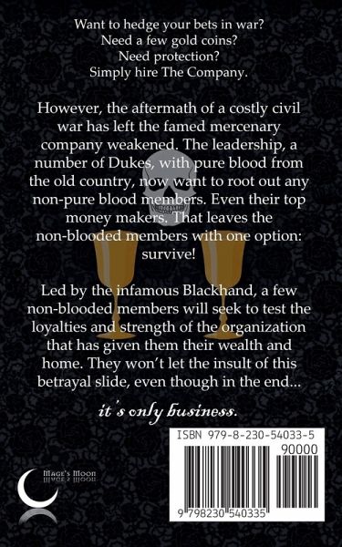 Want to hedge your bets in war? Need a few gold coins? Need protection? Simply hire The Company. However, the aftermath of a costly civil war has left the famed mercenary company weakened. The leadership, a number of Dukes, with pure blood from the old country, now want to root out any non-pure blood members. Even their top money makers. That leaves the non-blooded members with one option: survive! Led by the infamous Blackhand, a few non-blooded members will seek to test the loyalties and strength of the organization that has given them their wealth and home. They won't let the insult of this betrayal slide, even though in the end, it's only business