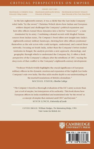 The Company's Sword reveals how the British East India Company acquired a private army and how Indian and European soldiers shaped the Company's expansion. Tracing the institutional development of the Company's armies alongside the rebellions that challenged its growth, Christina Welsch uncovers the militarism at the heart of colonial India.
